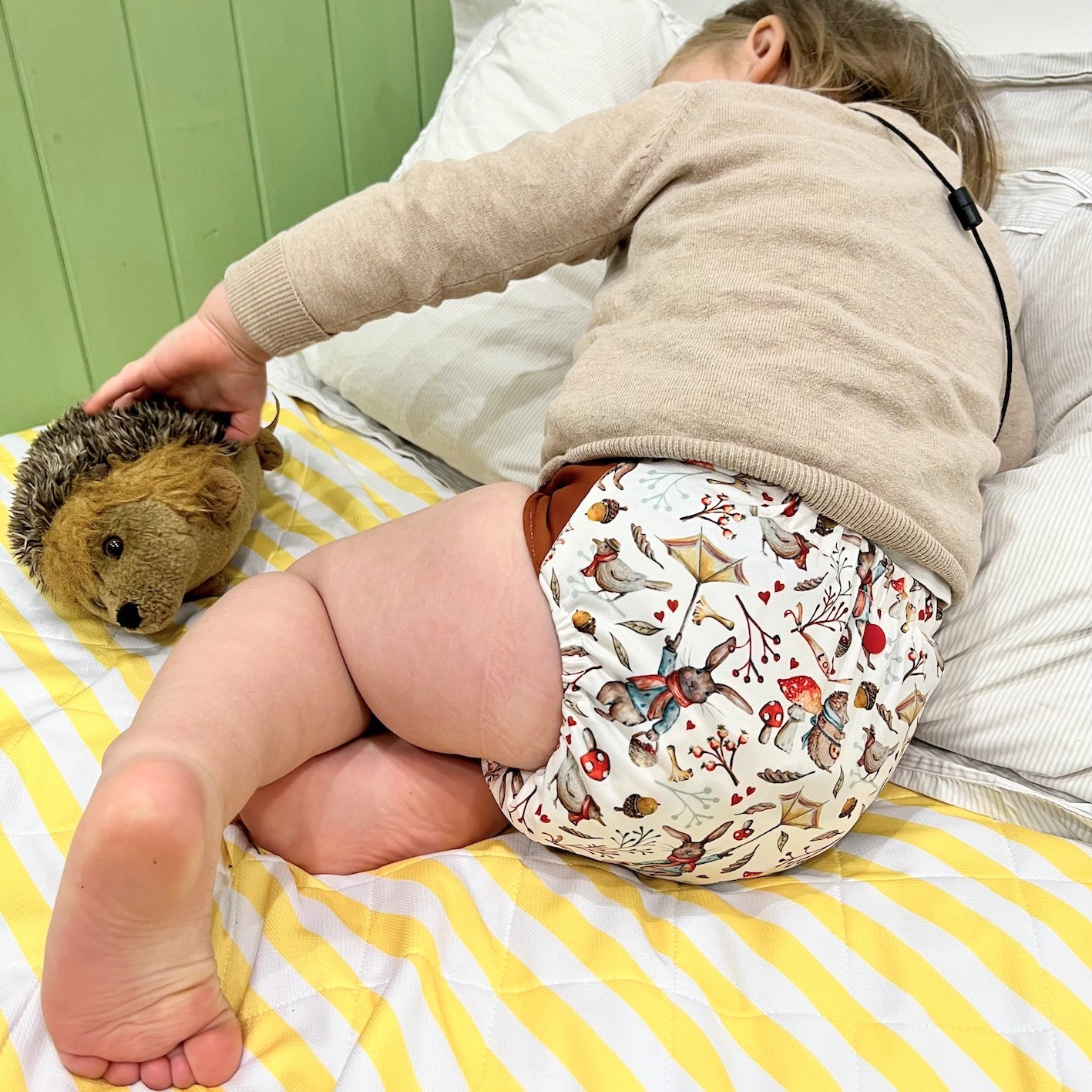 Cover: The water-resistant part that goes over a prefold or fitted nappy. Usually made of TPU/PUL, wool or fleece.
