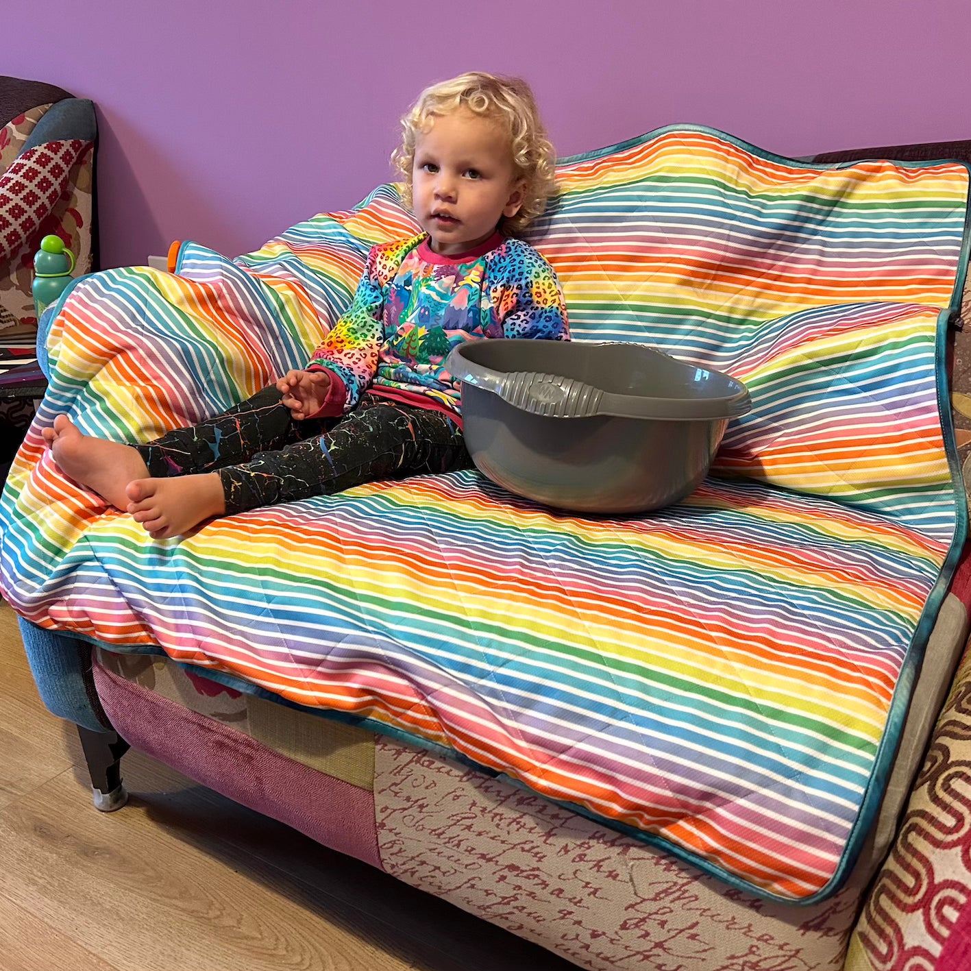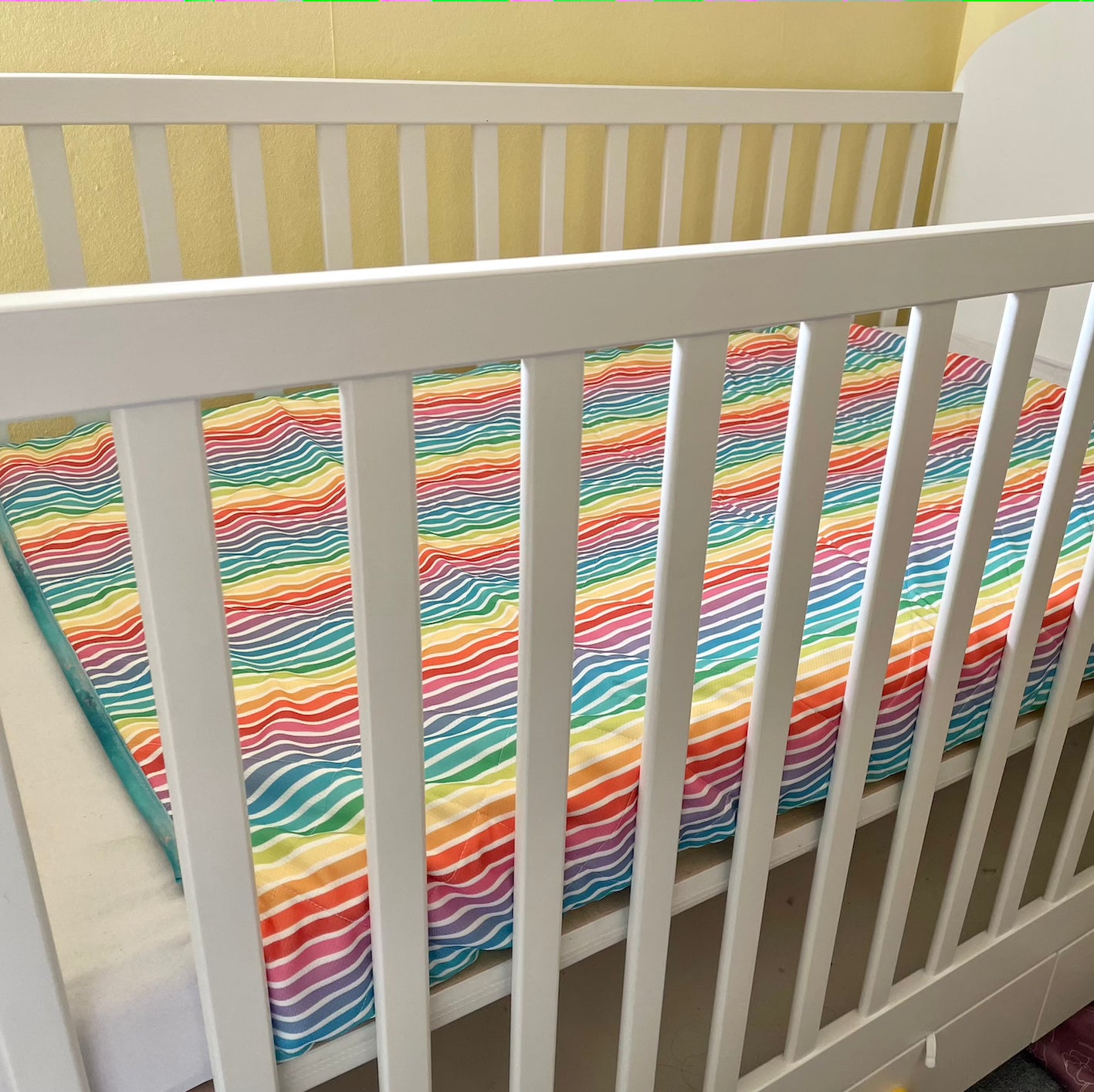 I absolutely love this mat. It’s saved our carpet during nappy free time - and it washed easily and dried so quickly considering how big it is! It’s a fab size to protect most cots and beds, and works on our sofa too.