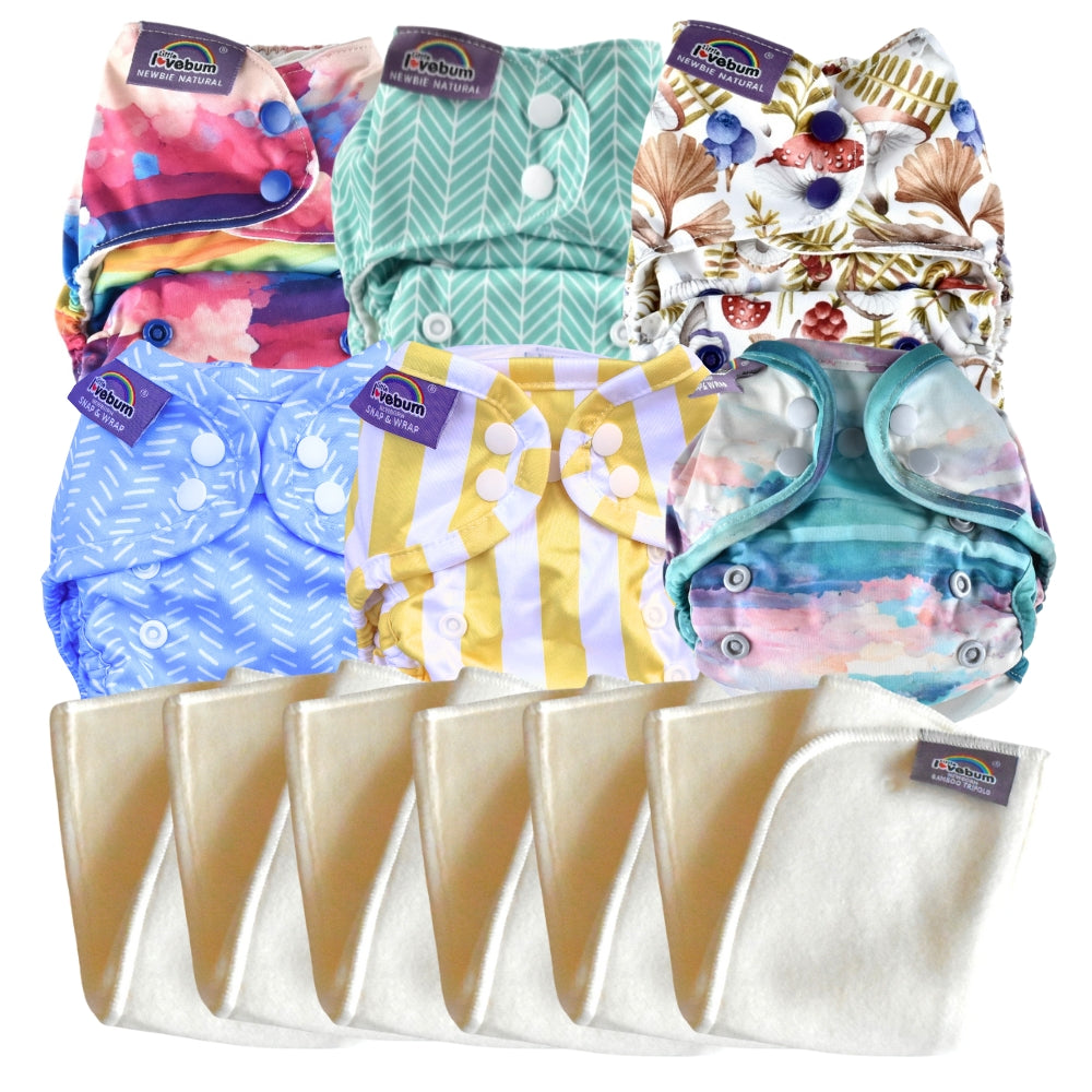 3x Organic Cotton Newbie Newborn All-in-One Nappies