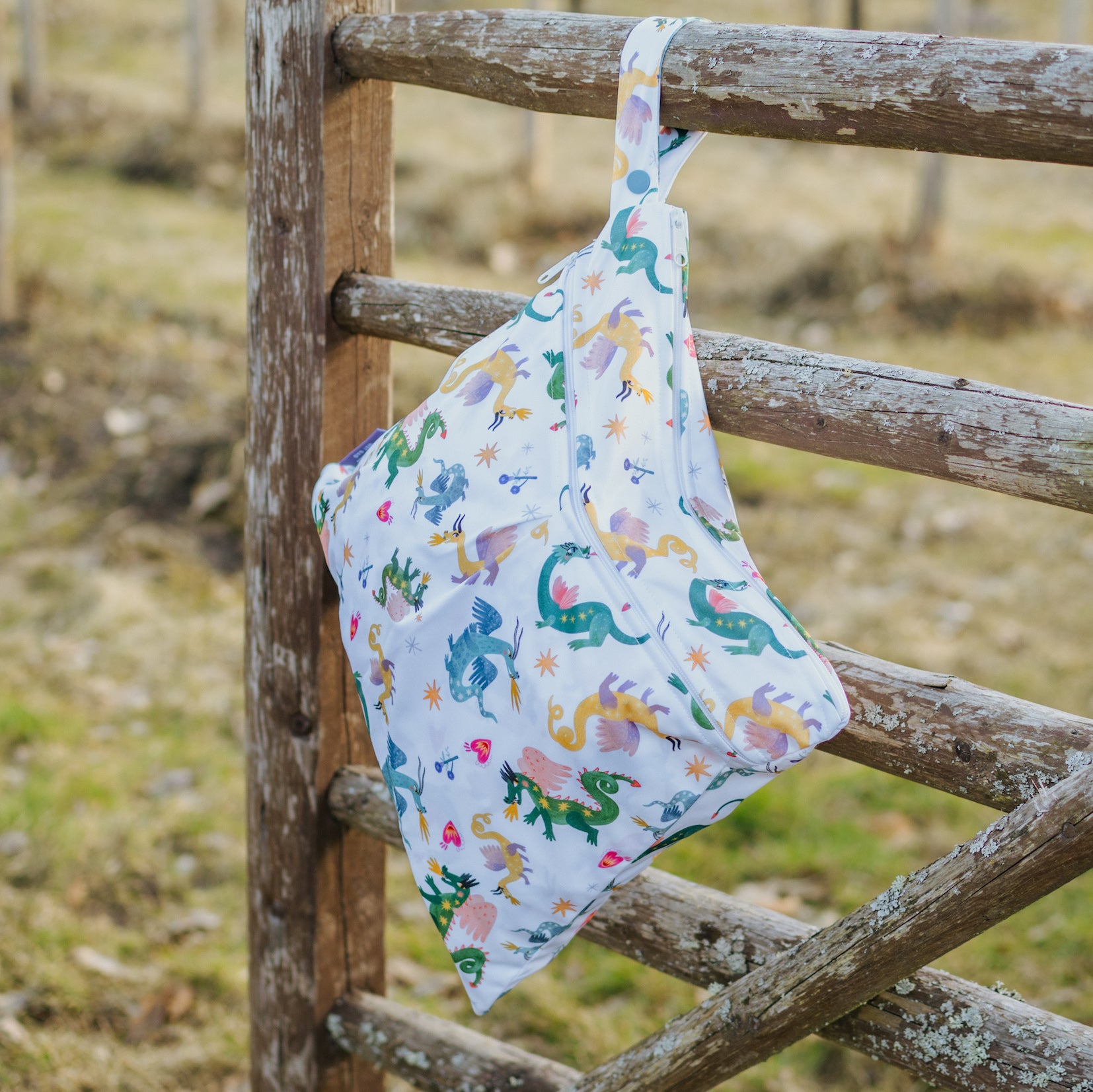With a generous capacity of up to six nappies, the Medium Wet Bag also boasts two handy pockets, making it ideal for storing both clean and dirty nappies when you're on the go. But this versatile bag isn't just for nappies; it's also perfect for storing wet swimming costumes or beachwear, keeping your belongings dry and organised.