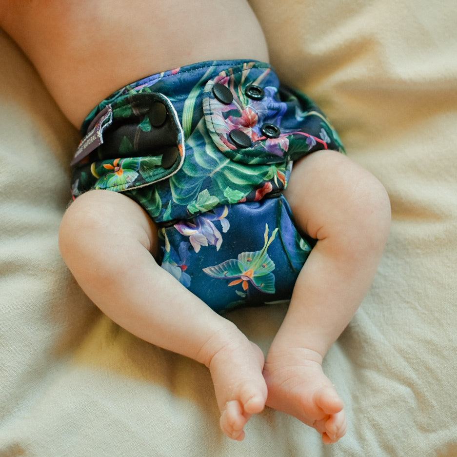 Birth-to-Potty (BTP): These are size adjustable reusable cloth nappies that fit from birth through potty training. These are a popular choice as they are economical since you will not need to purchase new sizes as your child grows. They are unfortunately a poor fit on smaller babies.