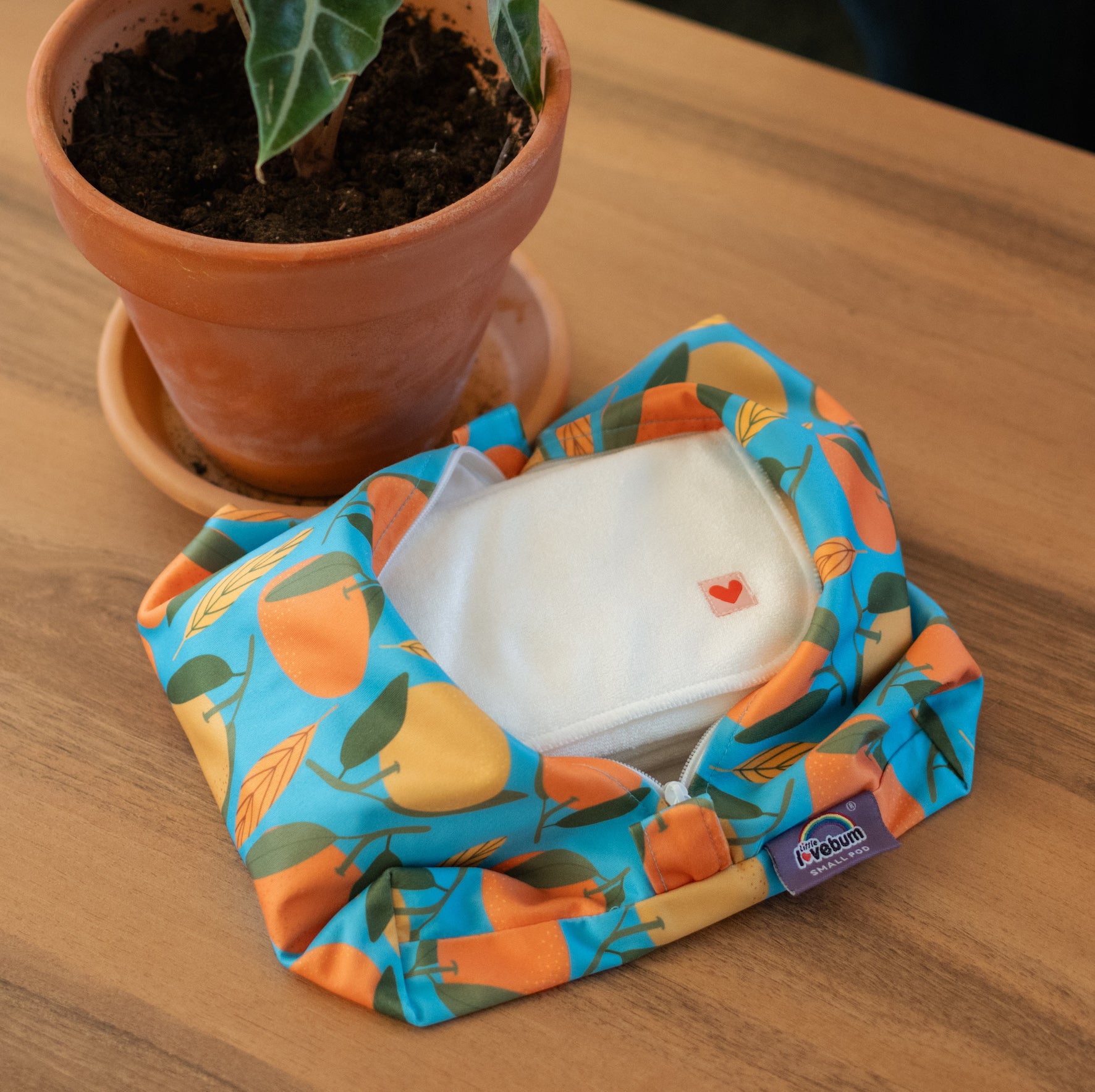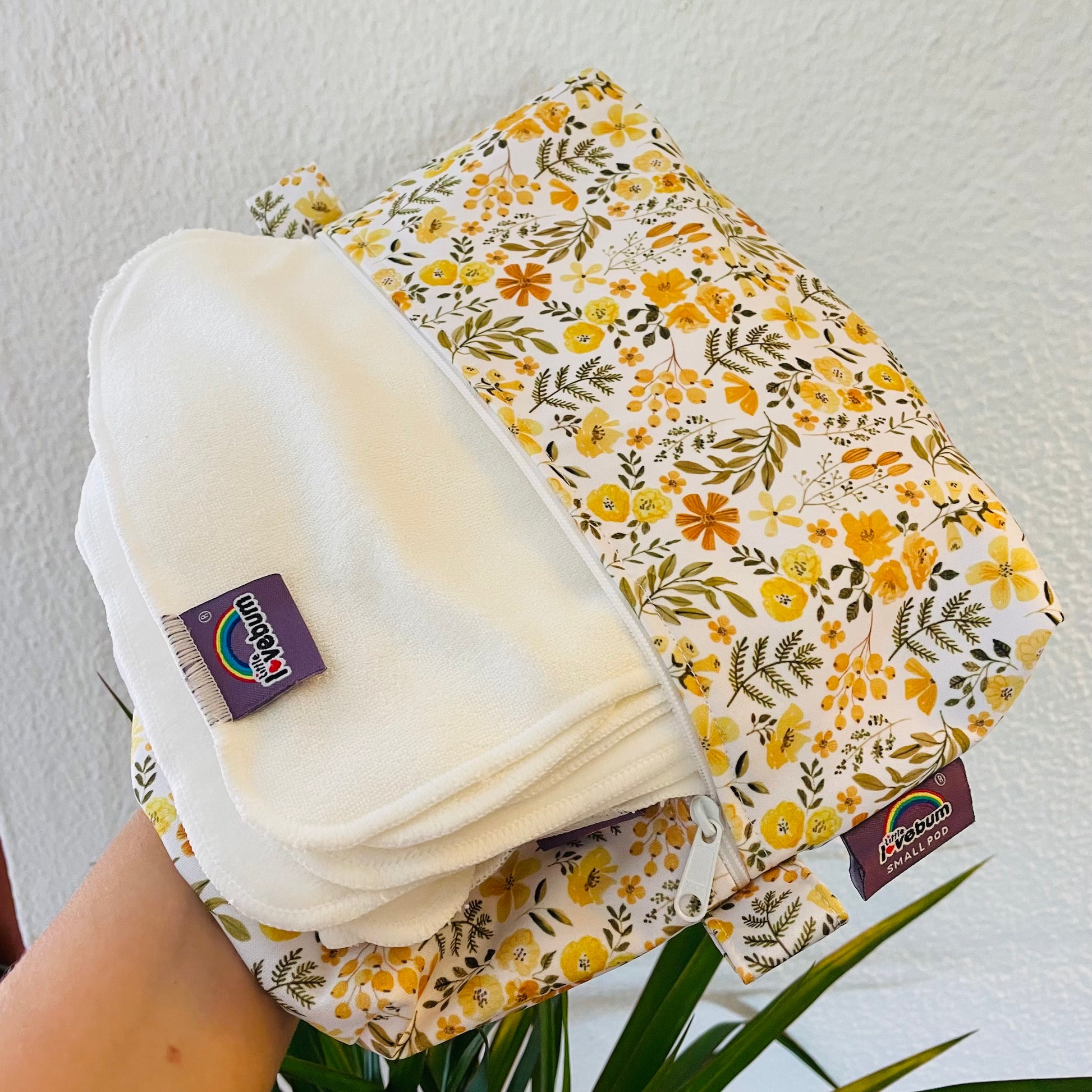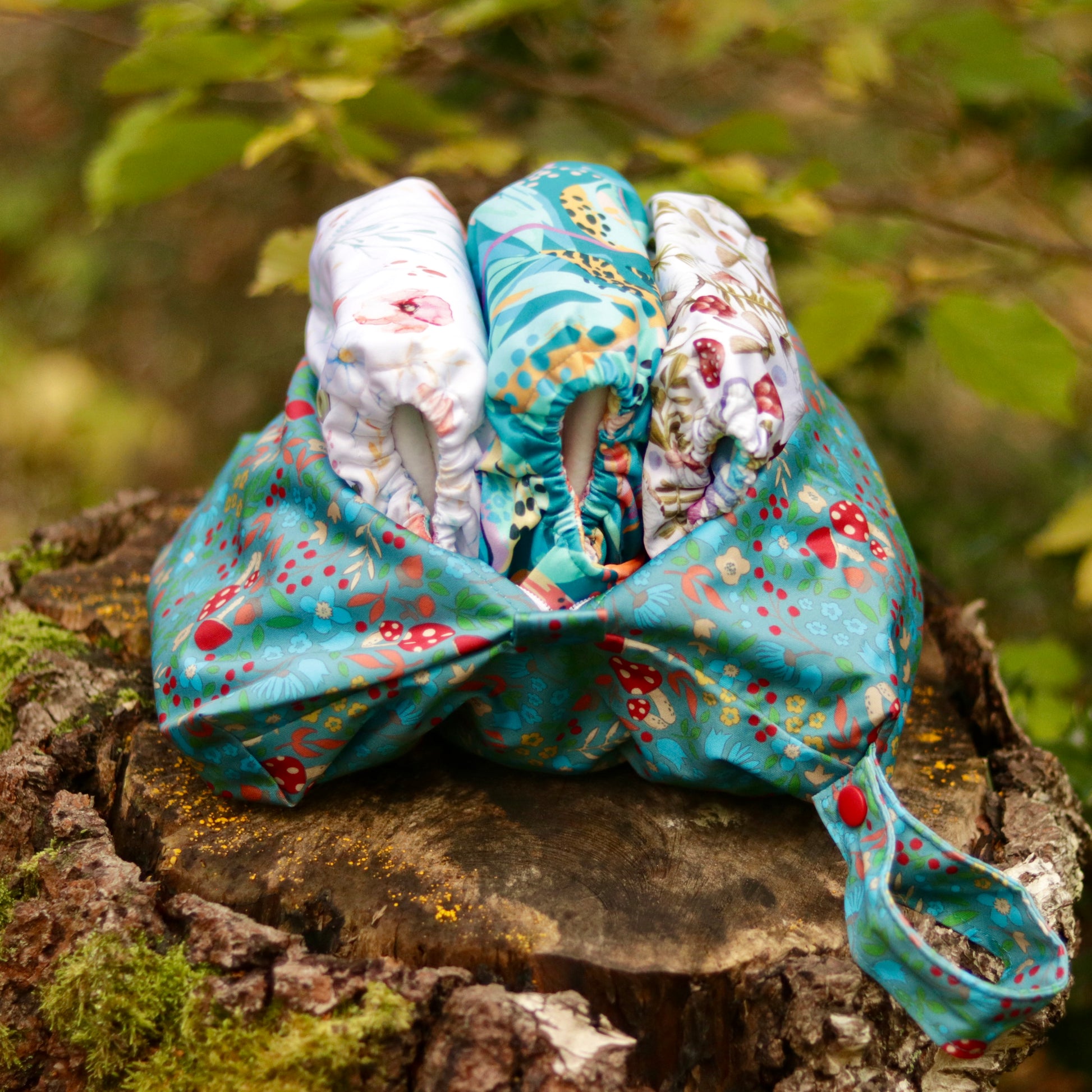 These are a fab alternative to the larger pod if you are just going out for part of the day and need a couple of nappies. They, of course, have endless other storage uses at home. The PUL is lovely and the prints are beautiful, something for everyone.
