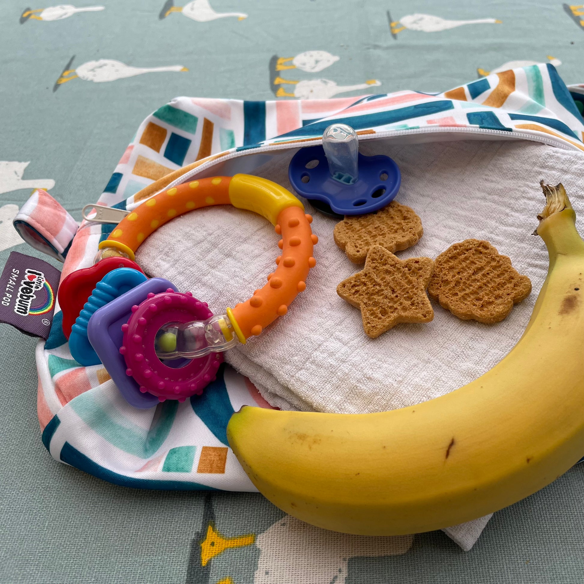 My favourite is to use it as a super slimmed down change bag. I can get a small change mat, one nappy and one wipe in. Then once the change is done, the pod becomes the dirty bag, with only the change mat needing to be stored separately after a change. Perfect for a short trip to e.g. a baby group