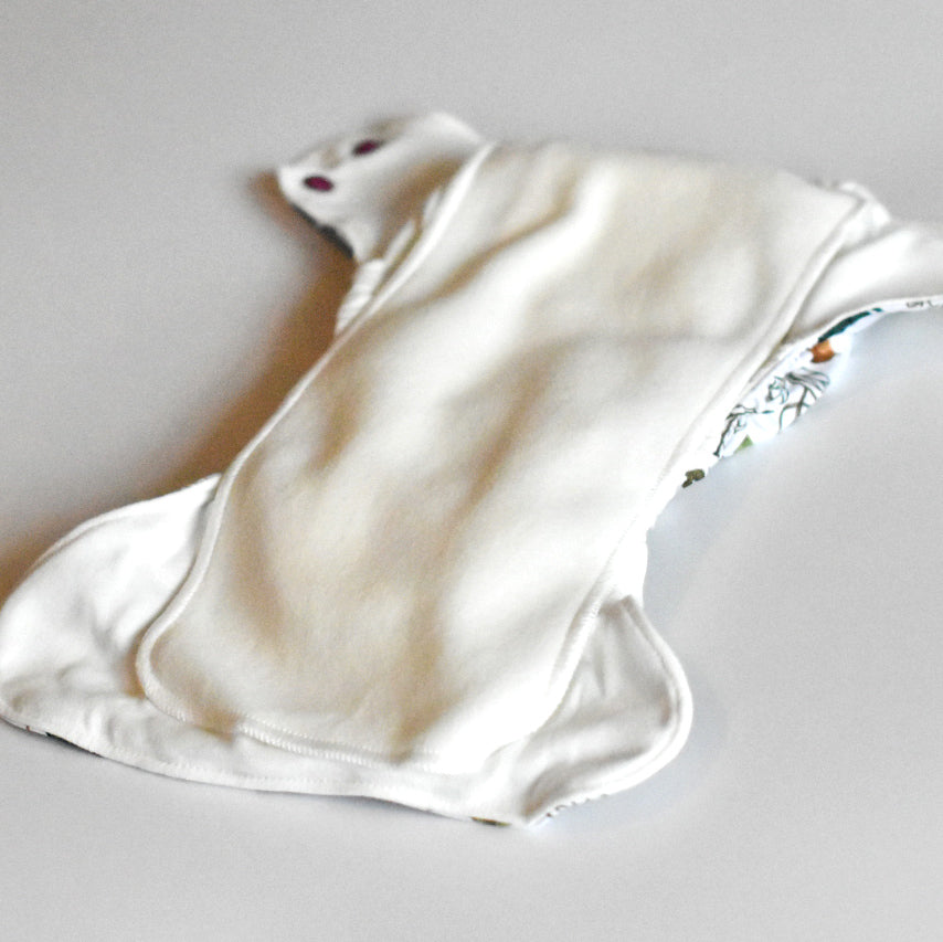 Insert: This is the absorbent part of the diaper, usually made from either microfibre, bamboo, hemp, or cotton. Inserts are either sewn on or added to the nappy.
