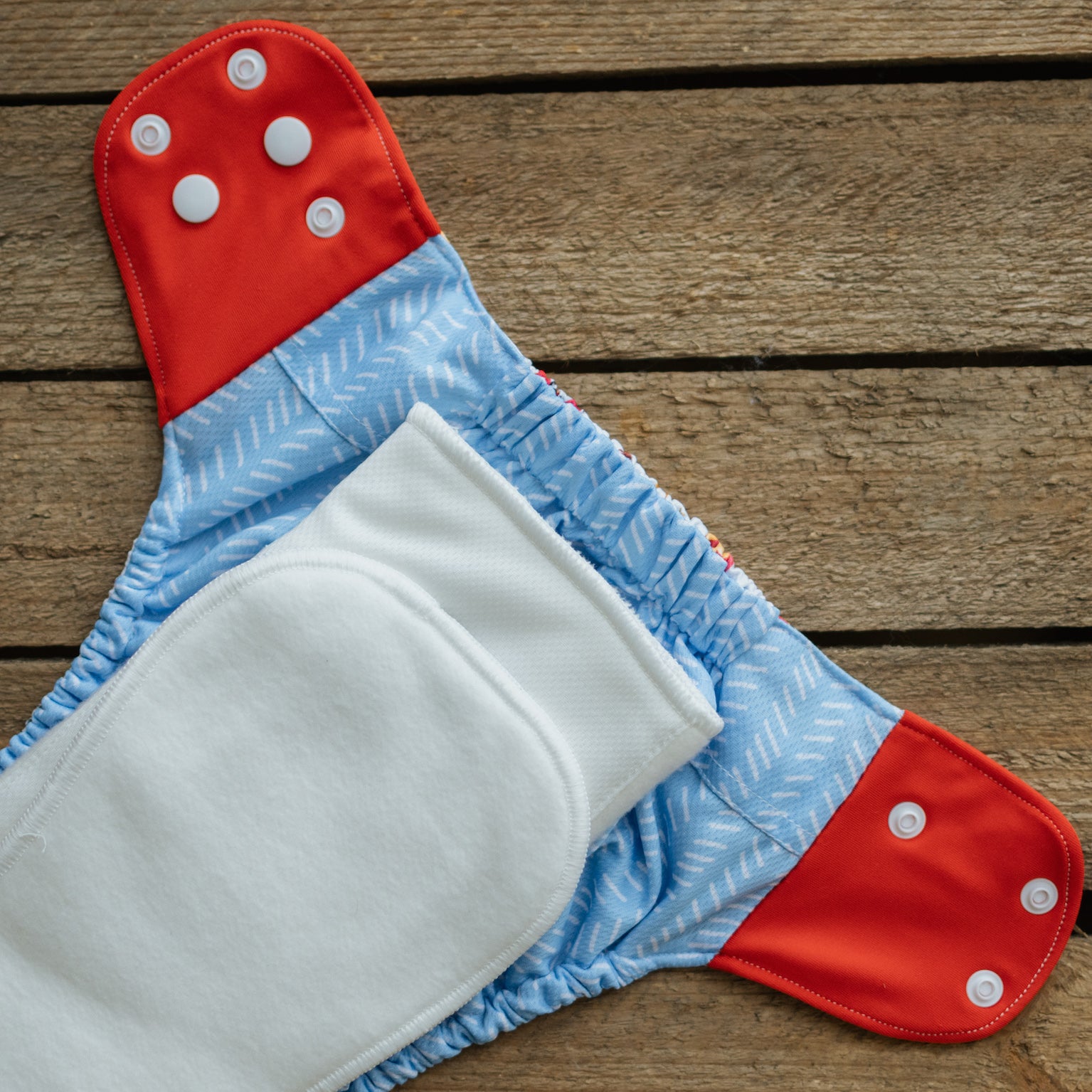Insert: This is the absorbent part of the diaper, usually made from either microfibre, bamboo, hemp, or cotton. Inserts are either sewn on or added to the nappy.