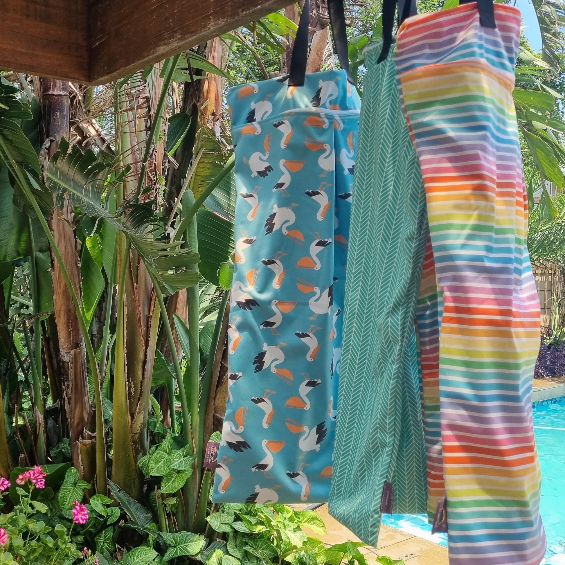 These extra-large wet bags hold approximately twenty nappies and can easily be hung from the back of a door, making them ideal for taking away on holiday instead of your bulky nappy bucket. You can even use them at home and do away with the nappy bucket, saving valuable floor space! Once your little one is out of nappies, they can be repurposed as general laundry bags.